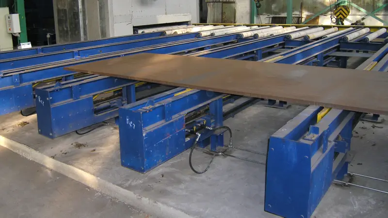 Roller conveyors are designed for transporting sheet and profile rolled metal, as well as welded metal structures. They allow safe movement of elements through shot blasting machines and surface treatment lines. Conveyors are particularly effective for wide and very heavy assemblies up to 1.5 meters high, ensuring stable and safe handling of parts.