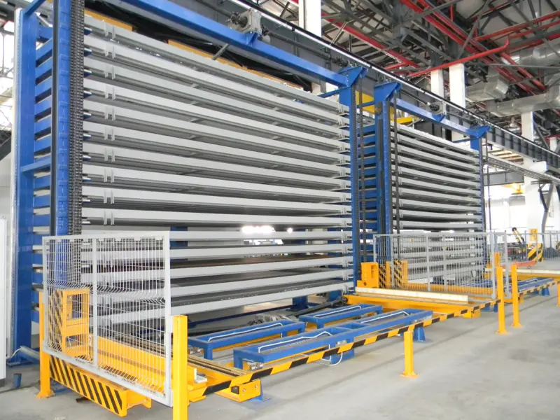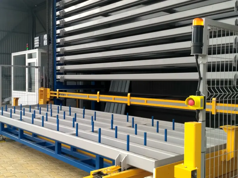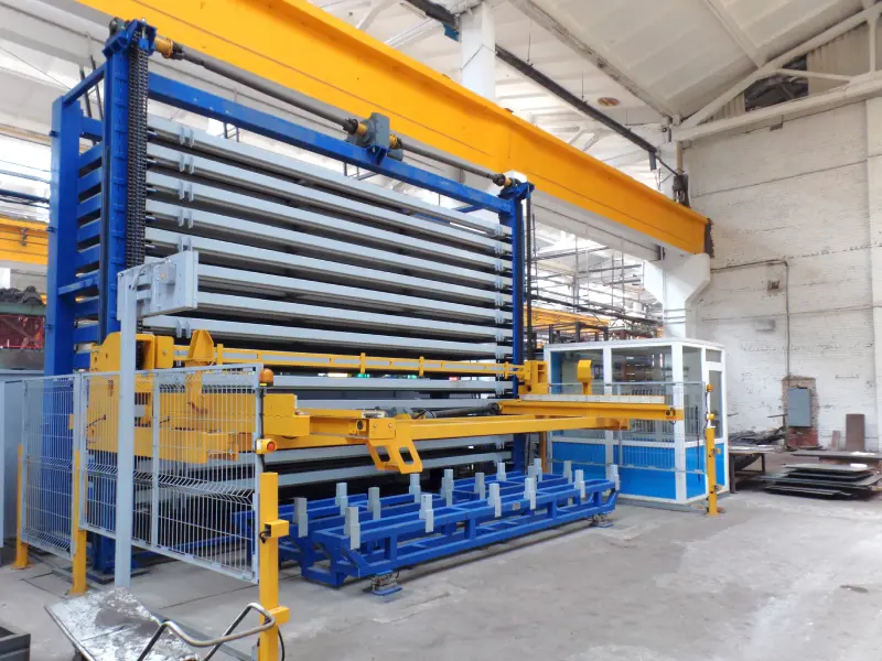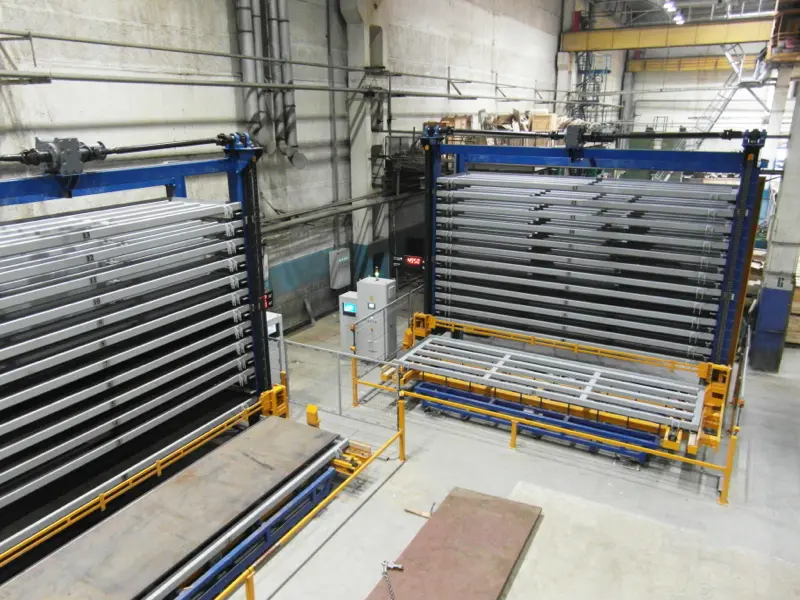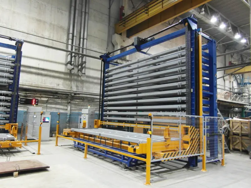 - The storage system can be equipped with inter-stage utility transport for metal-roll feed for technological operations (mechanical, thermal cutting, punching, bending, etc.)