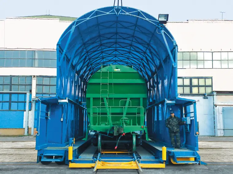 With the help of a train traverser, locomotives or wagons can be smoothly shifted sideways from one track to another — whether adjacent or directly opposite. This solution is particularly useful in locations where there isn’t enough space for traditional switch tracks, such as rail terminals and maintenance depots.