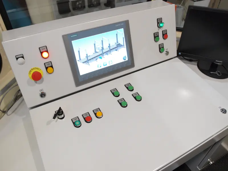 There are central control panel and utility control consoles. Operator on the control panel chooses the railway number, loading and unloading point of railway vehicle and the transfer table automatically moves to the set railway.